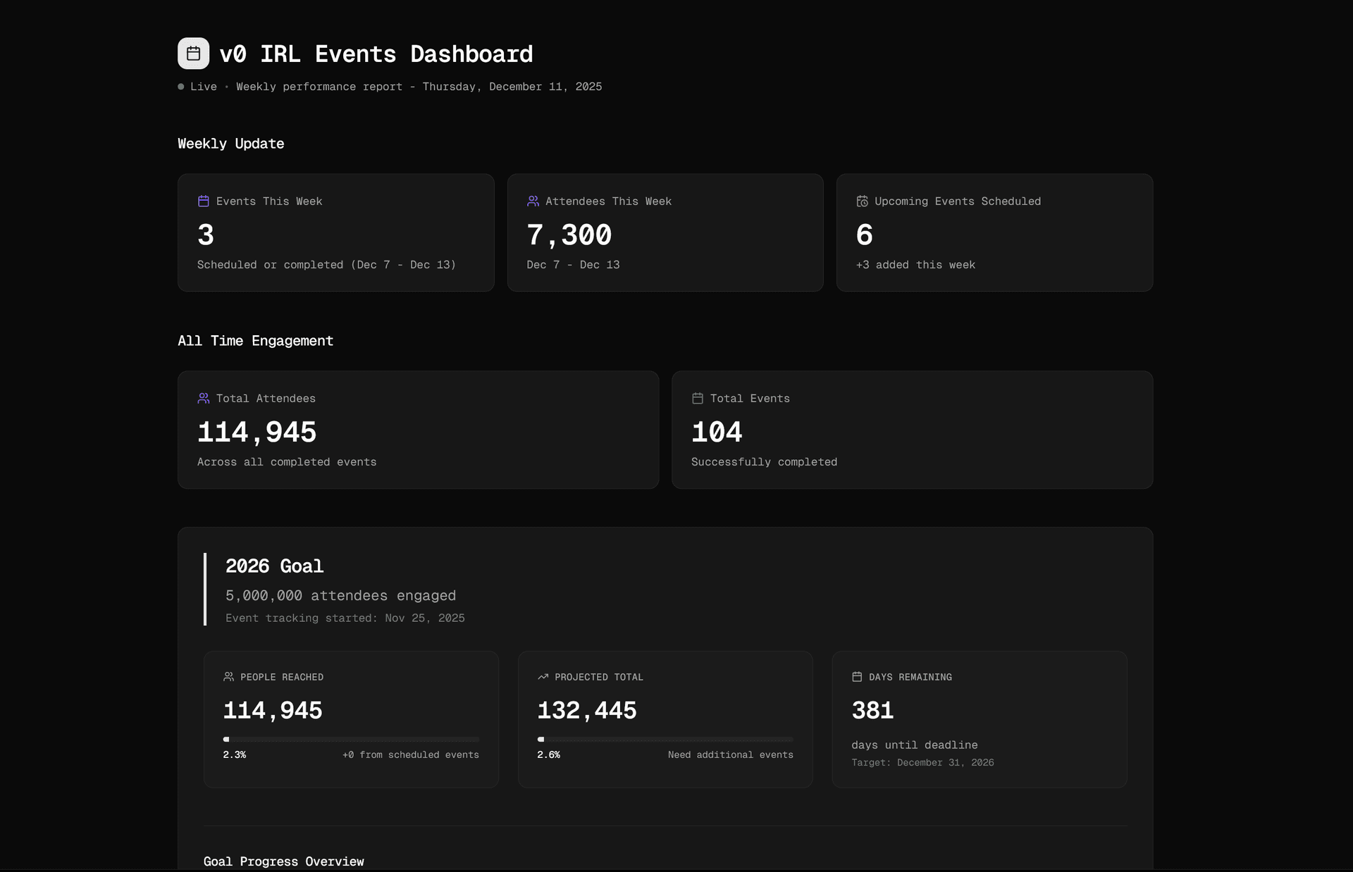 I want to build a tracking dashboard for our v0 IRLs (events) using our Notion events database.