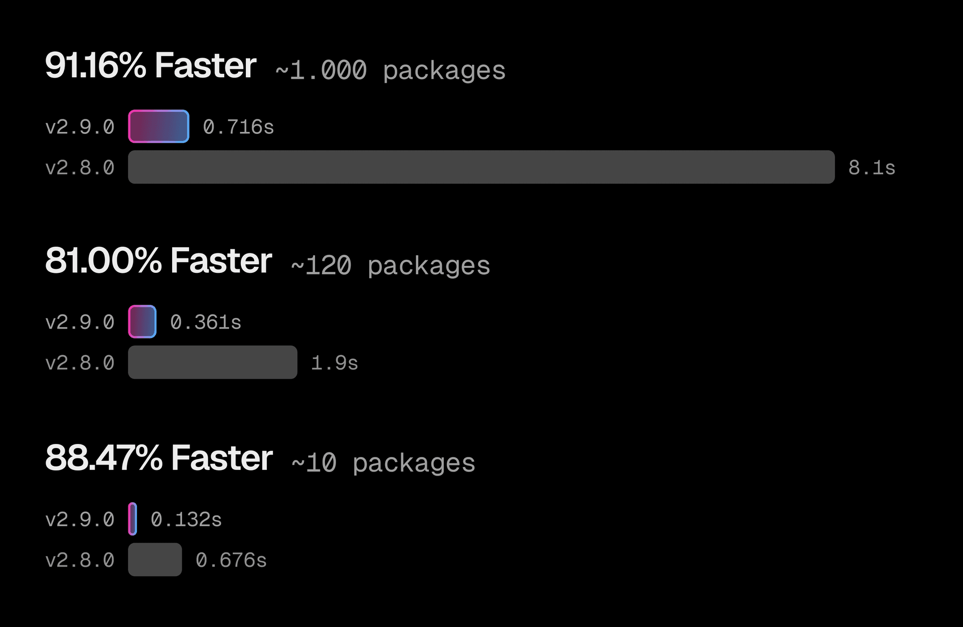These performance gains are now stable and ready for you to use. Visit the Turborepo 2.9 release post to learn more about the latest in Turborepo.