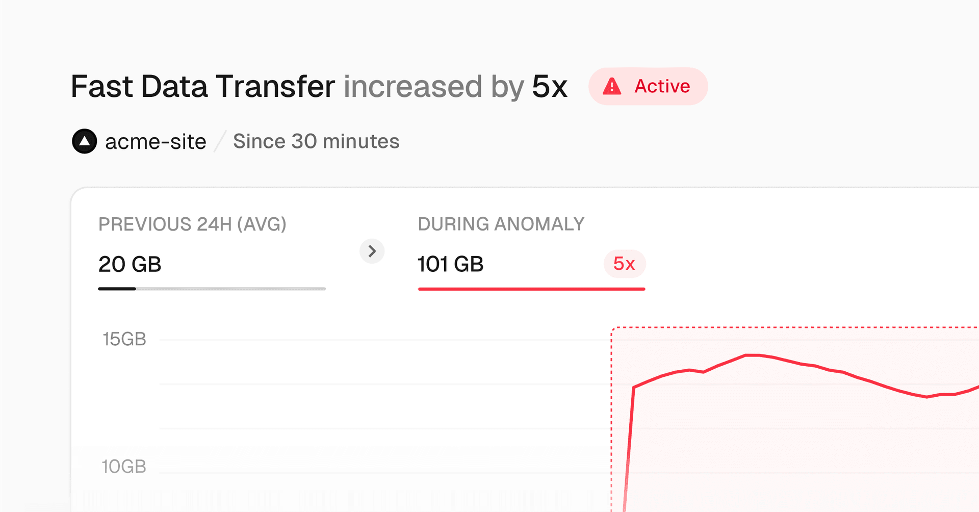Usage anomalies: unusual patterns in your application metrics, such as edge requests or function duration.